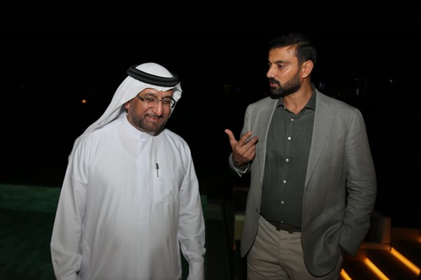 Mr Ubaid Ur Rehman Shaikh explaining his vison to bring nations together for the betterment of the humanity to Mr Abdul Latif Abdulla AlMulla